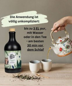 Mein „Schlummertrunk“ ist eine einzigartige Kombination aus diesen Kräutern, sowie Blütenhonig und Apfelessig, die dir hilft, tief und erholsam zu schlafen. Mit jeder Dosis unserer Wunderkombination wirst du spüren, wie dein Körper sich entspannt und dein Geist zur Ruhe kommt. Du wirst morgens aufwachen und dich ausgeruht, erfrischt und bereit für den Tag fühlen.